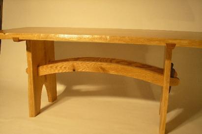 We had been sleeping for a number of years on a futon bed and the cotton batting mattress had become uneven and lumpy so we decided a new bed was needed. A search through area furniture stores was disappointing, most of what we saw did not look like it was solid enough to last even one lifetime. So I built us a bed frame with 6”X6” corner posts held together by wedged mortise and tenon joints so it could be disassembled and moved. Long after Sue and I are gone someone will be peacefully slumbering on it. This same process was repeated when a new dining table with a bench was needed and when people came to our house and saw these pieces some of them wanted one for their home.